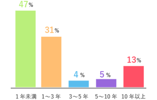 10年以上のスタッフが13%も!引き続きカラビナが安住の地になるよう体制作りを進めていきます。